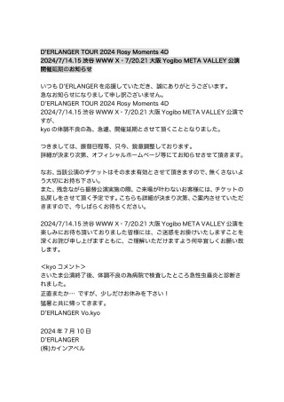 2024/7/14.15渋谷WWW X・7/20.21大阪Yogibo META VALLEY公演を楽しみにお待ち頂いておりました皆様には、ご迷惑をお掛けいたしますことを深くお詫び申し上げますともに、ご理解いただけますよう何卒宜しくお願い致します。