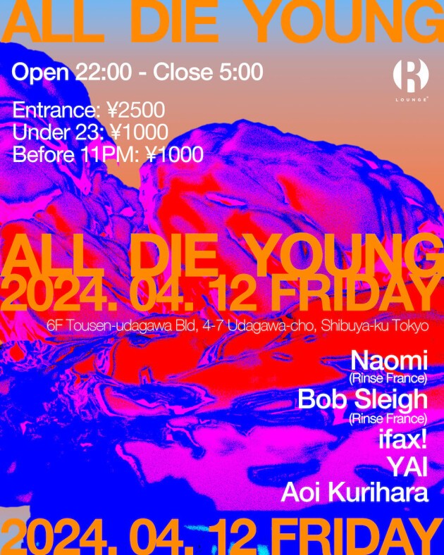 2015年から開催されているALL DIE YOUNGは主催者であるダンスミュージックDJ兼音楽ライターでもあるAoi Kuriharaの経験をもとに、スタイルやジャンルのクロスオーバーに焦点を当てている。 今回のメインゲストは、Apple Musicのラジオ番組やRinse FMのレジデントで、ジャーナリスト、ライターでもあるNaomiと、同じくRinse FMのレジデントのBob Sleighの2人。国内からはホストのAoi Kuriharaに加え、昨年のUS横断を経てHOLE AND HOLLANDから「Scholē EP3」をリリースしたばかりのifax!と、都内の主要クラブのみならず2023年にはベルリンのアンダーグラウンドテクノパーティSynthesisに出演したYAIなど、国内外問わず活躍するアーティストがサポートを務める。