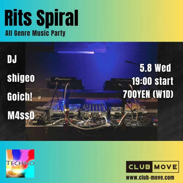 「Rits Spiral」は毎月第2水曜日に開催されている、立命館大学のDJサークル「立命館テクノ部」によるオールジャンルイベントです。