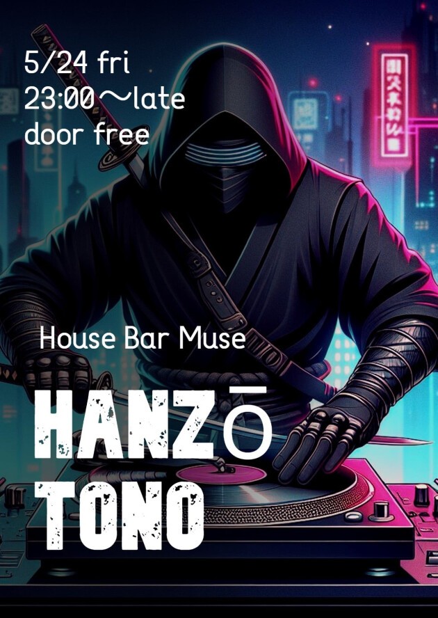 World-travelling DJ Hanzō Tono is coming to Japan again this year. His Osaka show is at house bar muse. We want you to concentrate on downtempo disco and deephouse.