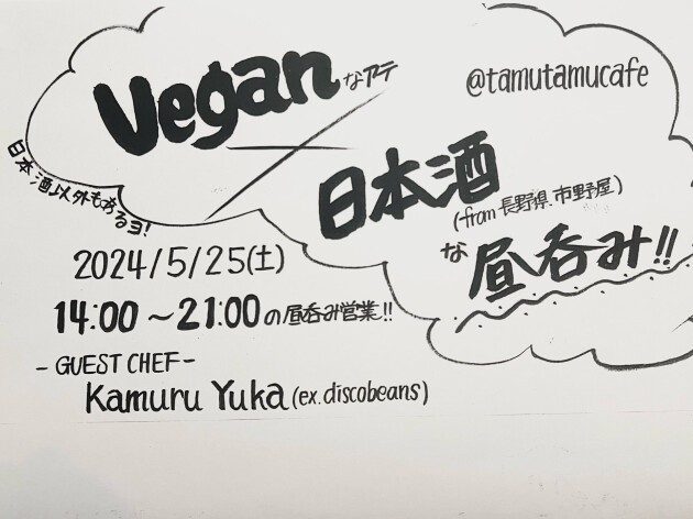 我々がお店というものをやりたいと思ったきっかけの場所、味園ビル2階のcafeQ→discobeansのユカさんとタムタムカフェにてVeganなアテコラボで昼呑みイベントやります!迎え撃つ日本酒は本人不在ですがSOL-g-SAKEの長野県市野屋さん!ヴィーガンの方も、お肉大好きな方でもみんな楽しめる1日になるはず…ユカさんを知ってる方も、今から知り合う方もぜひ♡DJ陣はAAAKKKIII、マスモトアツコ、Ashikagaにgood musicをお願いしております!