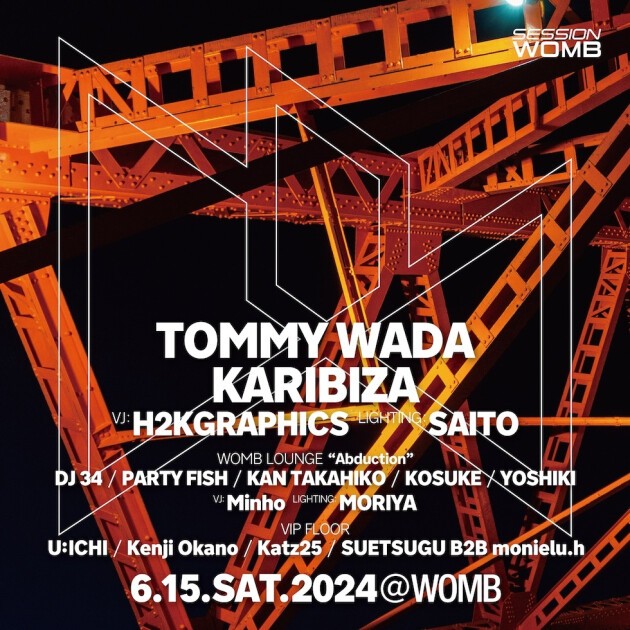 2001年にスタートして以来、トライバルハウス、テクノ、ハウスと時代の進化に沿ったメインストリームの4つ打ちを中心に、これまでに国内外のDJたちが出演してきた、WOMB のロングランレジデントパーティ SESSION (セッション)。