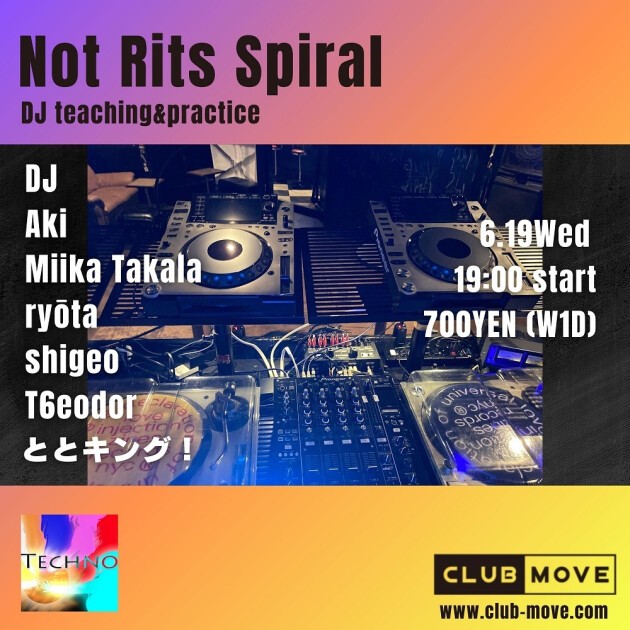 「Not Rits Spiral」は立命館大学のDJサークル「立命館テクノ部」による、サークルの所属を問わず誰でも参加可能な "DJ 練習会" です。