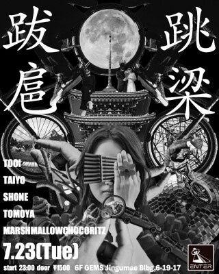 跳梁跋扈とは、ほしいままに跳ね回る、行動することという意味合いがあり、その名の通りほしいままに行動する2人の姿を表した。今回は、同世代の仲間達とともにドープなテクノ、ハウスで忘れられない夜を約束する。