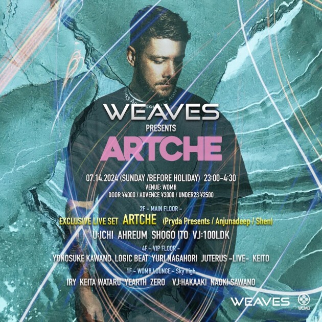 Melodic Techno/House シーンのニュースター、ARTCHE がスペシャルライブを披露。黎明期からシーンを力強く牽引してきた WEAVES at WOMB に初登場。