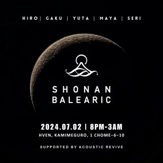 コンテンポラリーなカルチャーを創出する未来の発信地「HVEN(ヘイヴン)」(東京都目黒区上目黒 1-6-10 中目黒高架下)では、2024年7月2日(火)に、湘南エリアのシーサイドラウンジをベースに精力的に活躍するDJ集団『湘南バレアリック』より、5名のDJ(梶野博之氏、永島岳氏、大谷勇太氏、佐藤万斐氏、芹澤愛氏)を招聘し、クラブラウンジを盛り上げます。