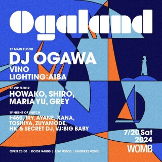 真夏の夜に恒例の OGALAND バースデー BASH 開催!2F メインフロアでは DJ OGAWA のロングセットに LJ AIBA が華を添え、オープニングには VINO も登場し最高なプレグレジャーニーをお届けする。4F VIP フロアでは、HOWAKO、SHIRO、MARIAYU、GREY がフロアを盛り上げ、1Fは NIGHT OF SNITCH がフロアをジャックしサイケが熱い一夜を演出する。