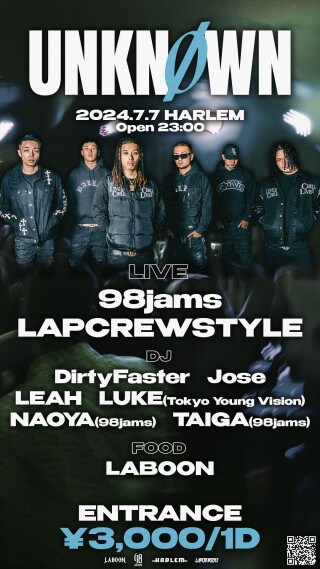 DJ: DirtyFaster, Jose, LEAH, LUKE(Tokyo Young Vision), NAOYA(98jams), TAIGA(98jams)