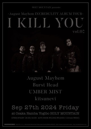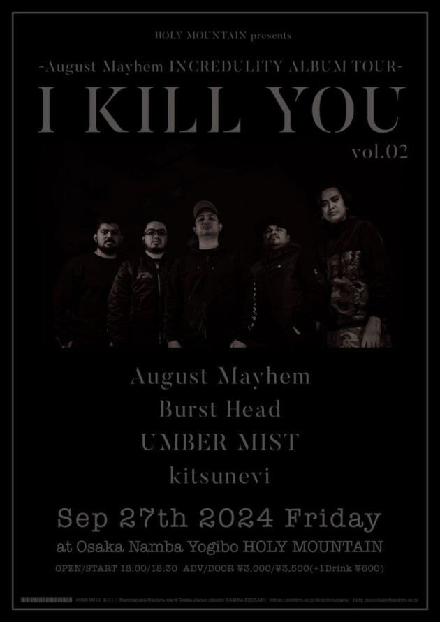 August Mayhem(PHL)/ Burst Head / kitsunevi / UMBER MIST 各バンド取り置き、もしくは下記フォームから御予約ください。 https://forms.gle/xACV9YGLUuPoDhtS8