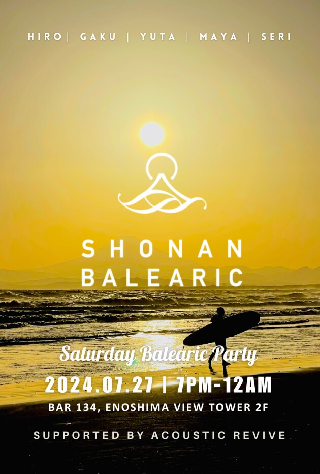 BAR134.ENOSHIMAにて「湘南バレアリック presents 海の音楽会“Saturday Balearic Party”」が開催されます。