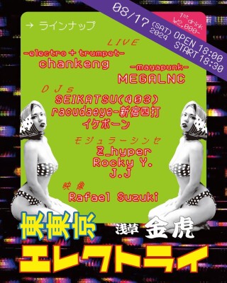 『 東東京エレクトライ 』 @浅草金虎 2024 8/17(土) Open 18:00 Start 18:30---26:00 ※1stDrink ¥2.000-
