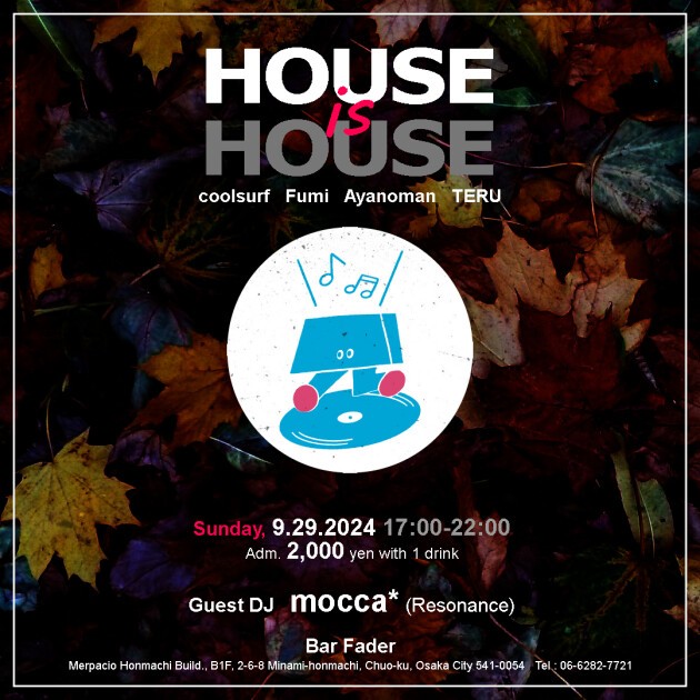 Guest mocca*(Resonance) DJs coolsurf Fumi Ayanoman TERU 今回はResonance at アメ村夜来香よりmocca*さんをお招き! 途切れぬグルーヴ&酒。ご期待ください。