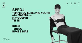 共演には、東京のアンダーグラウンド・クラブシーンで最もユニークでエキサイティングな存在として知られるMars89によるライブ名義 Temple Ov Subsonic Youth aka Mars89 、2023年のSPFDJ初来日もサポートしBOILER ROOMを始め世界各国のラジオやプラットフォーム、アンダーグラウンドシーンからRDCといった日本の主要フェスティバルまで活動するMAYUDEPTH、オルタナティヴな東京の現行レイヴカルチャーを体現する人気パーティ電気菩薩を主宰するTEI TEIがラインナップ。