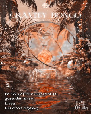 TYO GQOMのK8によるパーティGravity Bongo。 2023年2月より不定期に開催している本パーティは、根幹にあるベースミュージックへの深い愛と民族音楽へのセンサーが鋭敏なDJ陣がラインナップされ、毎度異なるゲストを招きながらも一貫したアティチュードでベースミュージックラバーから支持を得ている。レジデントであるGQOMクルーTYO GQOMのK8を筆頭に、自他共に認めるレコード好きでもあるZUNDOKO DISCOのBOW、幼少期のルーツよりデトロイト/シカゴをはじめとするUSサウンドを追求したヴァイナルプレイで活動しているguro.det、テクノやダウンビート、ドローン・アンビエントなどを、フロアに応じサイケデリックに拡張していく実験型のスタイルのDJで、仙台より東京に拠点を移したk:seaが出演する。低音と民族音楽を軸にそれぞれの個性とセンスが織り混ざったダンスミュージックが鳴り響く