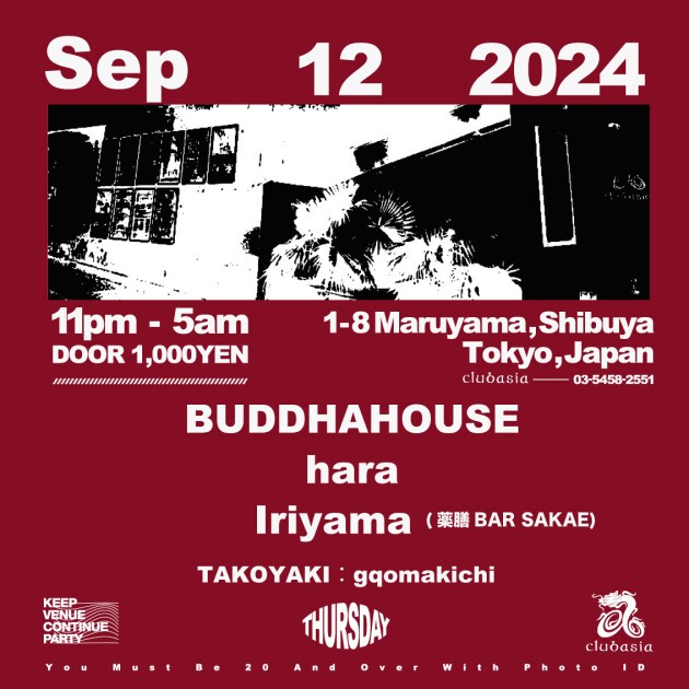 ✸BUDDHAHOUSE, haraの2人がResidentを務める第2木曜clubasia "THU"。