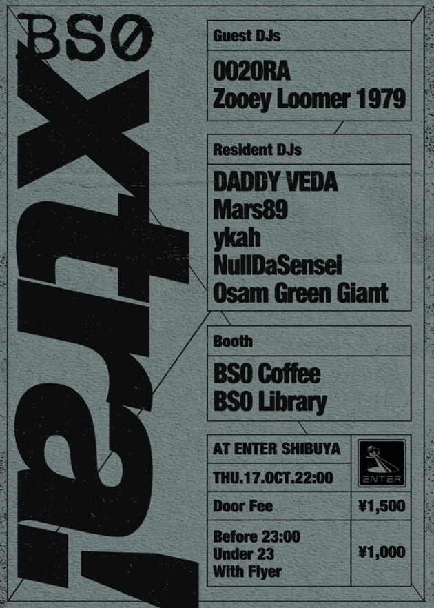 多様なバックボーンを持ったDJたちが、ダブ、ダブステップ、グライム、ジャングル、ブレイクビーツ、テクノなどのスタイルを“現代のパンク”と捉えて一夜に落とし込む、BS0xtra(ビー・エス・ゼロ・エクストラ)。