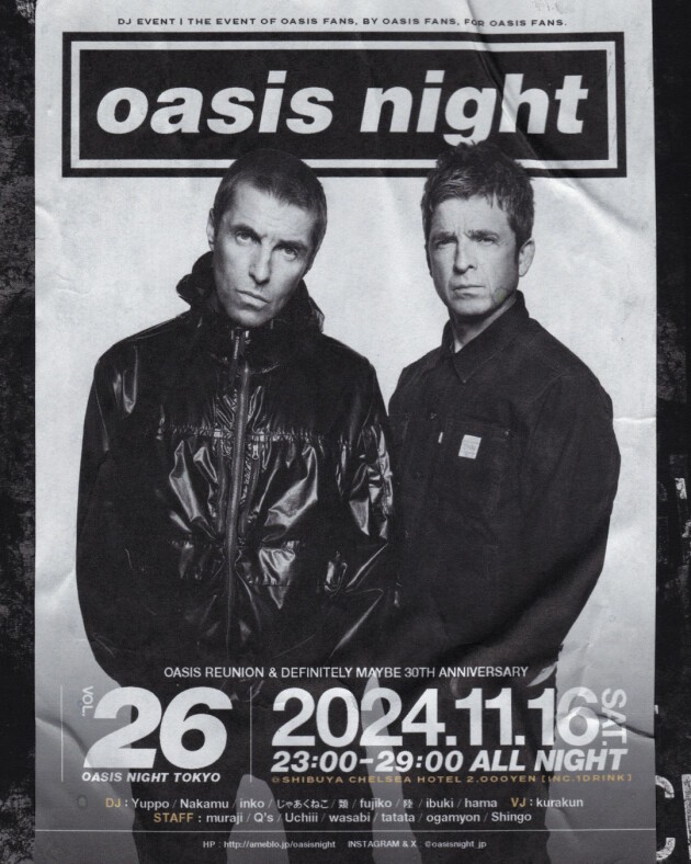 そんな中、日本最大級のoasisファンイベントである我々が黙っているわけにはいきません!お待たせしました!2024年最初で最後のOASIS NIGHT TOKYO VOL.26開催決定です!