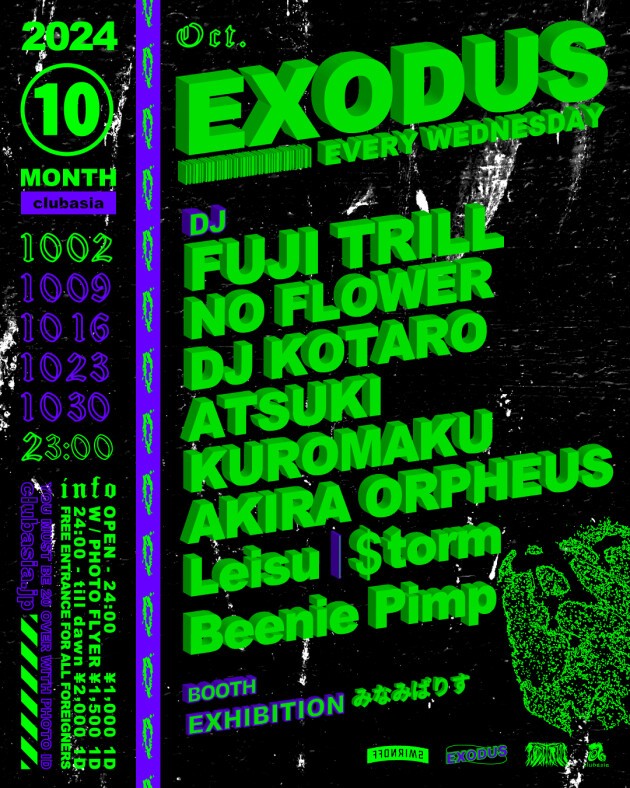 ✺ FUJI TRILLをはじめ多方面に活躍するDJ , BeatMakerが毎週水曜の渋谷の夜をにぎわす通称 " #エクソ "。LIVE PAINT, LIVE TATTOO, EXHIBITIONも隔週でcheck。