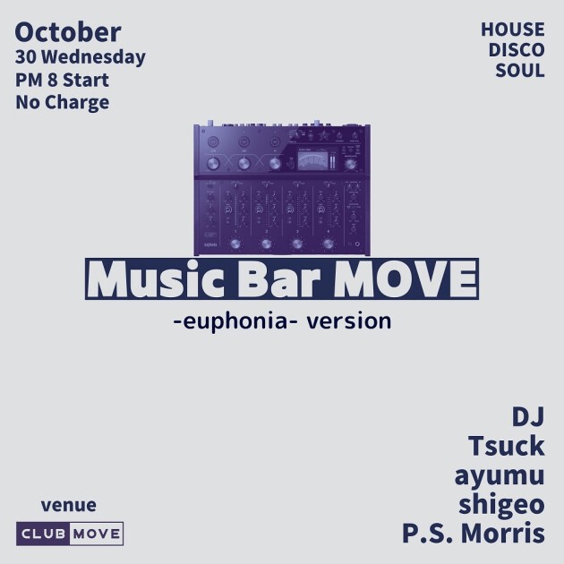 DJ BAR営業のこの日はMOVE界隈の様々なメンバーがプレイします。
