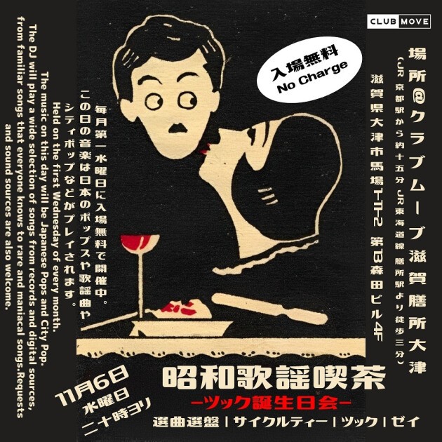 Held on the first Wednesday of every month, admission is free.The music on this day will be Japanese pop and city pop.