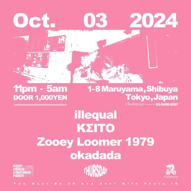 2022年にSTARTした平日木曜のNEW SPOT"clubasia THURSDAY" 第1木曜日はDJの"okadada"キュレーションによる開催。 予測不能な夜に中毒者続出の第一木曜、お見逃しなく。