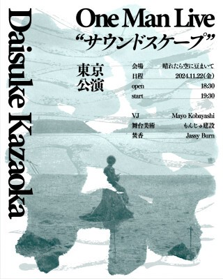 レゲエ / ダブやフォークなどをベースに、セルフプロデュースで完成させた初のアルバム『サウンドスケープ』をリリースし大きな話題を呼んでいる、新世代SSW “Daisuke Kazaoka”。初のワンマンライブが名古屋と東京で開催される。