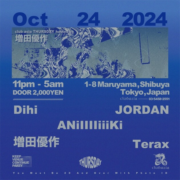 平日木曜のNEW SPOT"clubasia THURSDAY" 増田優作をホストに迎え、都内各所で活躍する盟友達が平日のclubasiaに集結! グッドミュージックな一夜間違いなし!