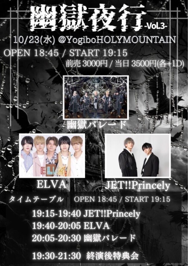 ACTS: 幽獄パレード/ELVA/JET!Princely TICKET: https://t.livepocket.jp/e/6lljp