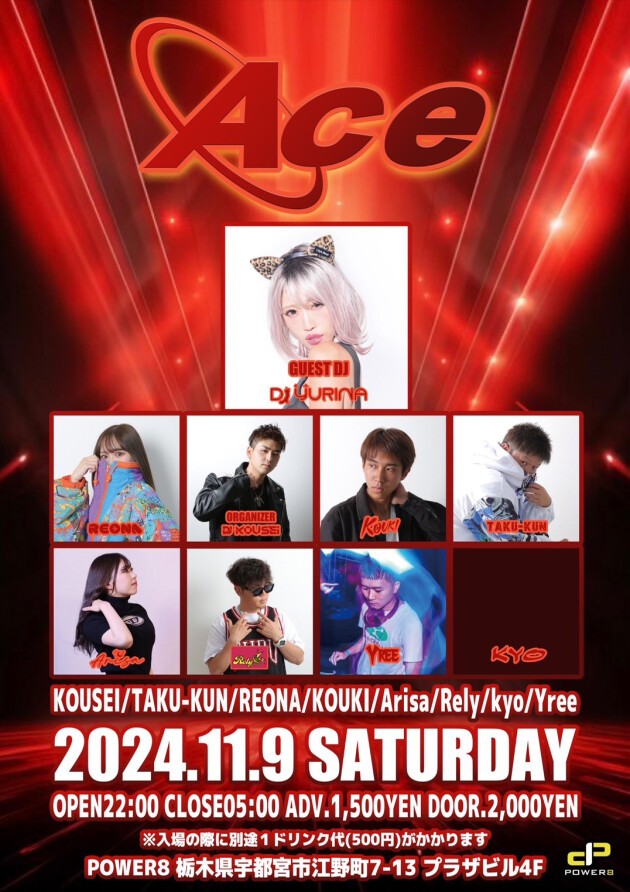 Ace ◆ GUEST DJ YURINA ◆DJs TAKU-KUN REONA KOUKI Arisa Rely kyo Yree