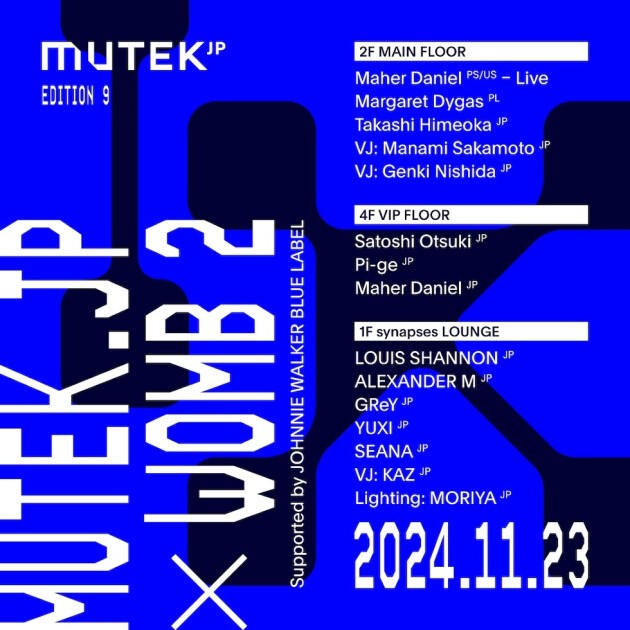 11月23日(土)の MUTEK.JP × WOMB では、盟友 Ricardo Villalobos と世界中のフェスティバルなどを共に展開する、パレスチナ人 アーティスト Maher Daniel が日本初来日を果たす。また、テクノやハウスといった幅広い DJ 界隈からコアなクラバーまで絶大な信頼を受ける才女 Margaret Dygas が登場。