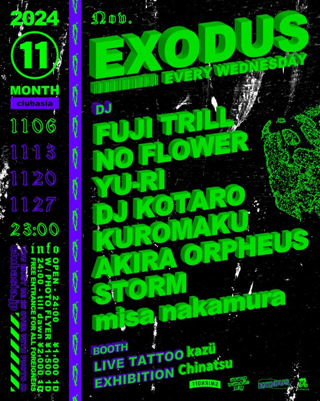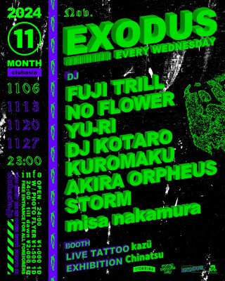 ✺ FUJI TRILLをはじめ多方面に活躍するDJ , BeatMakerが毎週水曜の渋谷の夜をにぎわす通称 " #エクソ "。LIVE PAINT, LIVE TATTOO, EXHIBITIONも隔週でcheck。