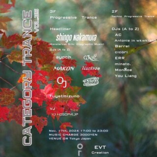 オーガナイザーとしては、2021年4月より、自身が主催するトランスイベント「Category Trance」をor Tokyo、渋谷WOMBにて開催。