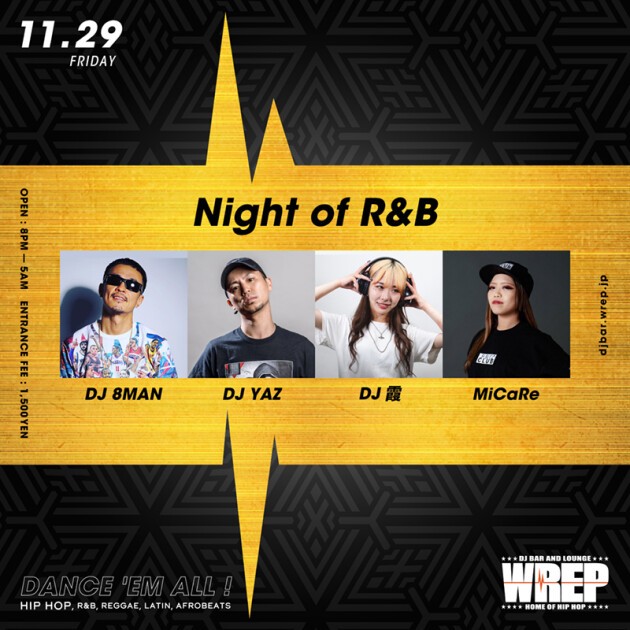 『ヤンチャナイト』 DJ’s, MOTOHIRO, ZIN, KAZ, A2O, SHINGO, CHI-BOU, Pちゃん, 武道, MOTOKI, MC’s, i@ra, Kt,