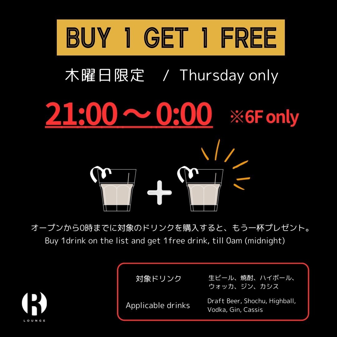 0時までに対象のドリンクを購入すると、もう一杯プレゼント。