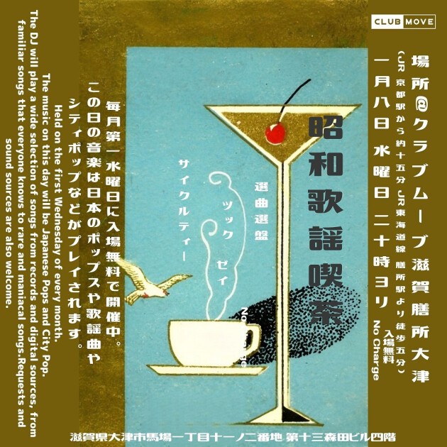 Held on the first Wednesday of every month, admission is free.The music on this day will be Japanese pop and city pop.