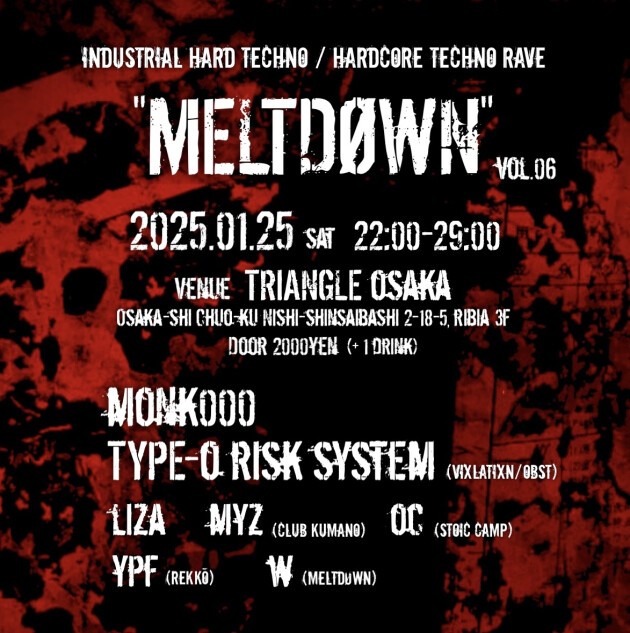 インダストリアルサウンドを基調としたHard Techno / Hardcore Techno Rave "MELTDØWN"。
