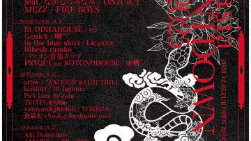O-EASTにはカウントダウンアクトにSoichi Terada、百発百中のパーティーメーカー・どんぐりず、フジロックやFFKT 、米SXSWに出演し 国内外で注目を集めるNTsKi、京都West Harlemを拠点に活動するPAL.Soundsが登場。クロージングは、近年復活し大きな話題を呼んだインダストリアル・レイブ・パーティーDK SOUNDでレジデントDJを務めるTraks Boysが担当する。