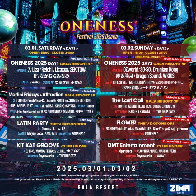 ONENESS Festivalは、「文化のボーダレス」と「音楽のジャンルレス」をコンセプトに掲げ、音楽を通じて「すべてはひとつ」になる体験を創り上げるフェスティバルです。