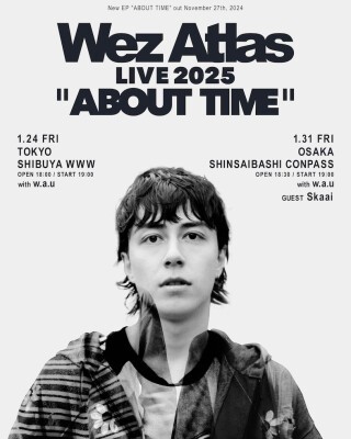 Wez Atlas, the rising hip-hop artist with Japanese and American roots, will hold solo shows in Tokyo and Osaka to celebrate the release of his latest EP, ABOUT TIME. Performing alongside the talented band w.a.u., Wez will bring his energy and flow to the stage for an unforgettable show that bridges cultures and styles. The event kicks off at 19:00.