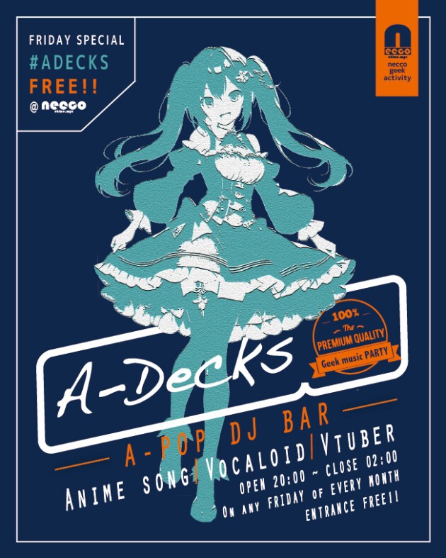 アニソン、ボーカロイド、VTuber、インターネットミュージックなどなどA-POP DJ BARとして営業いたします。
