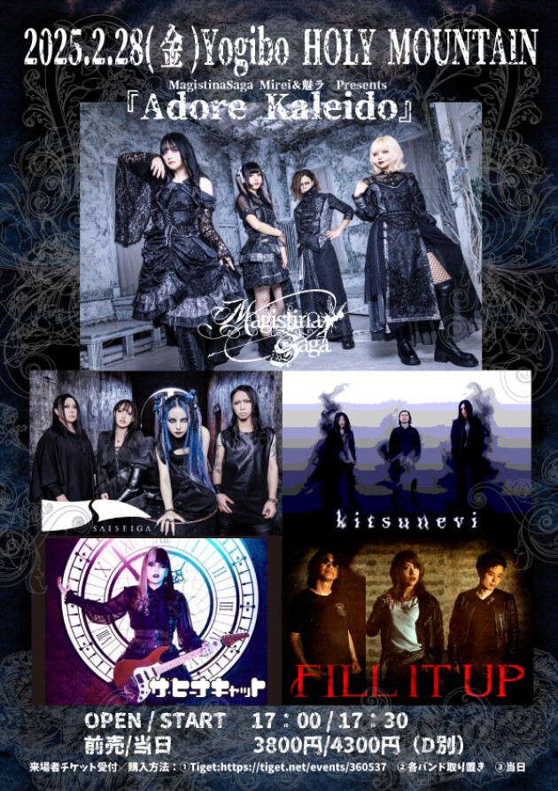<ACTS> Magistina Saga/ザ・ヒーナキャット/kitsunevi/SAISEIGA/FILL IT UP <TICKET> https://tiget.net/events/360537 受付期間 2024/11/23 20:00~2025/02/27 23:59