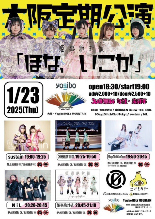 <ACTS> 姫事絶対値 / CHICKEN BLOW THE IDOL / sustain / 9DayzGlitchClubTokyo / NiL <TICKET> https://tiget.net/events/369464