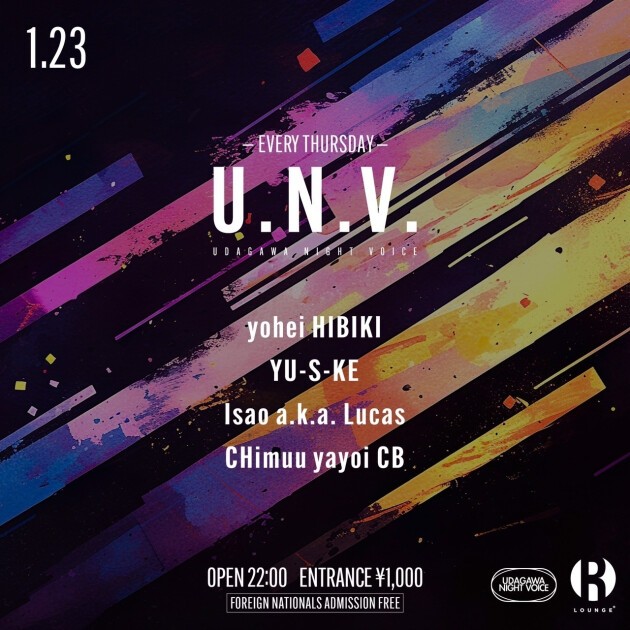 UDAGAWA NIGHT VOICE (U.N.V.), a night party every Thursday.