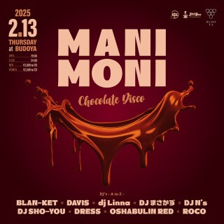2月13日の木曜日は、梅田 BUDOYA OSAKA にて開催中のレギュラーパーティ MANI MONI のバレンタインデー・スペシャル Chocolate Disco が夜19時より公演致します。