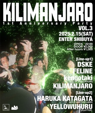 来たる2月15日、KILIMANJARO VOL.3を渋谷ENTERにて開催する。今回のパーティーはKILIMANJARO 1st Anniversary Partyとなっており、オープンからアフターアワーズまで足を止めることなく踊り続けられる、多幸感の溢れるパーティになるだろう。