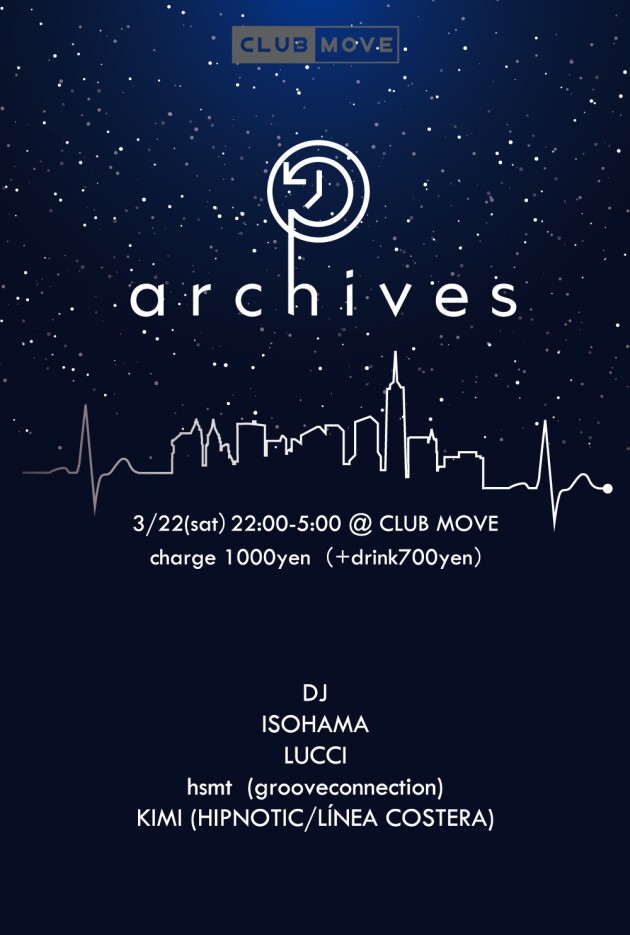 “archives” is a gathering of four DJs who met in Kyoto when they were teenagers and are still working as DJs. Nowadays, CLUB MUSIC from the 90's is being reevaluated, so come and experience their GROOVE that ran through that era in real time!