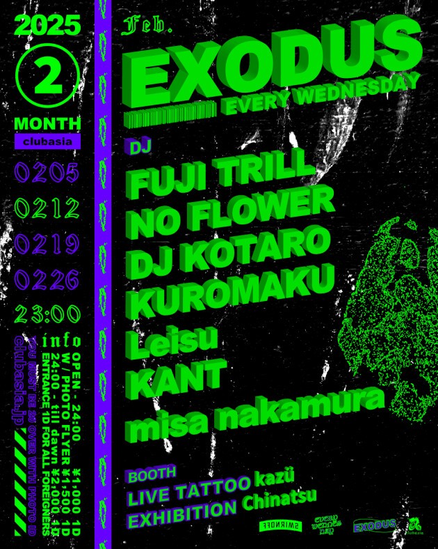 ✺ FUJI TRILLをはじめ多方面に活躍するDJ , BeatMakerが毎週水曜の渋谷の夜をにぎわす通称 " #エクソ "。LIVE PAINT, LIVE TATTOO, EXHIBITIONも隔週でcheck。