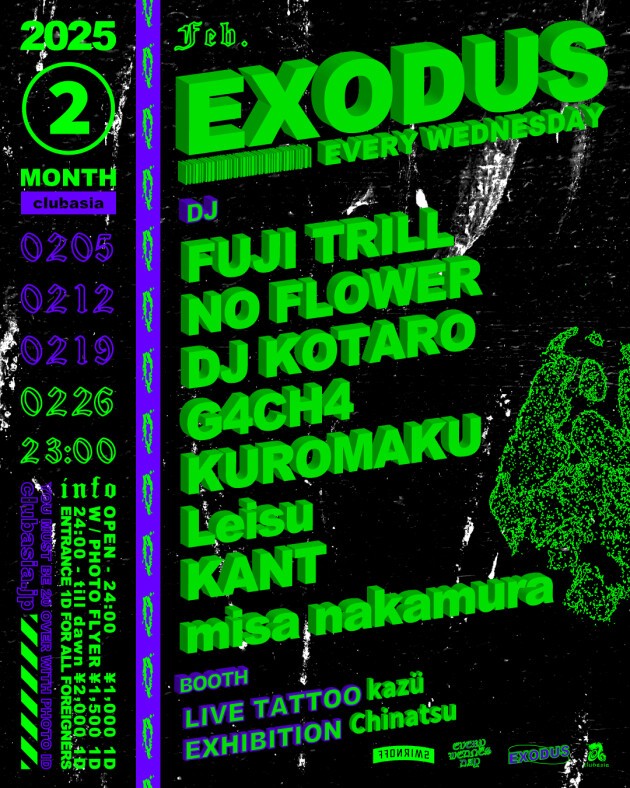 ✺ FUJI TRILLをはじめ多方面に活躍するDJ , BeatMakerが毎週水曜の渋谷の夜をにぎわす通称 " #エクソ "。LIVE PAINT, LIVE TATTOO, EXHIBITIONも隔週でcheck。