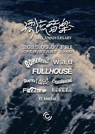 大阪を拠点に、国内外で活動の幅を広げる FULLHOUSE、オルタナティブ・ロックを基盤としたダンスパーティを長年主催する SUPERFUZZ、開催のたびに超満員となる勢いのあるコレクティブ兼レーベル w.a.u、そして 漂流音楽 が出演。それぞれが築いてきたシーンやコミュニティが交差し、ジャンルを超えた独自の空間を作り上げる。VJは、CYKのパーティーで欠かせない存在であり、FUJI ROCK FESTIVAL ‘24のSAMOのVJとしても記憶に新しい、kenchanが務める。