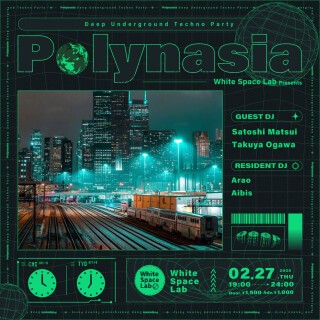 2月のPolynasiaは、Red Barの「NO HOUSE?」やKOARAのDetroitに特化したParty「R.S.A」などにレギュラー出演し、その他渋谷を中心にHouse/Techno Partyで精力的に活躍しているSatoshi Matsuiと、2000年代に田中フミヤから大きな影響を受けClub Musicに陶酔し、現在は神田のExtraweltなどを中心に活躍しバイナルでMinimal/Deep Minimalなグルーヴを展開するTakuya Ogawaの2名をGuestに迎え、厳冬の候、繊細で芸術的なHouse/Techno/Minimalで小箱の夜を彩る。